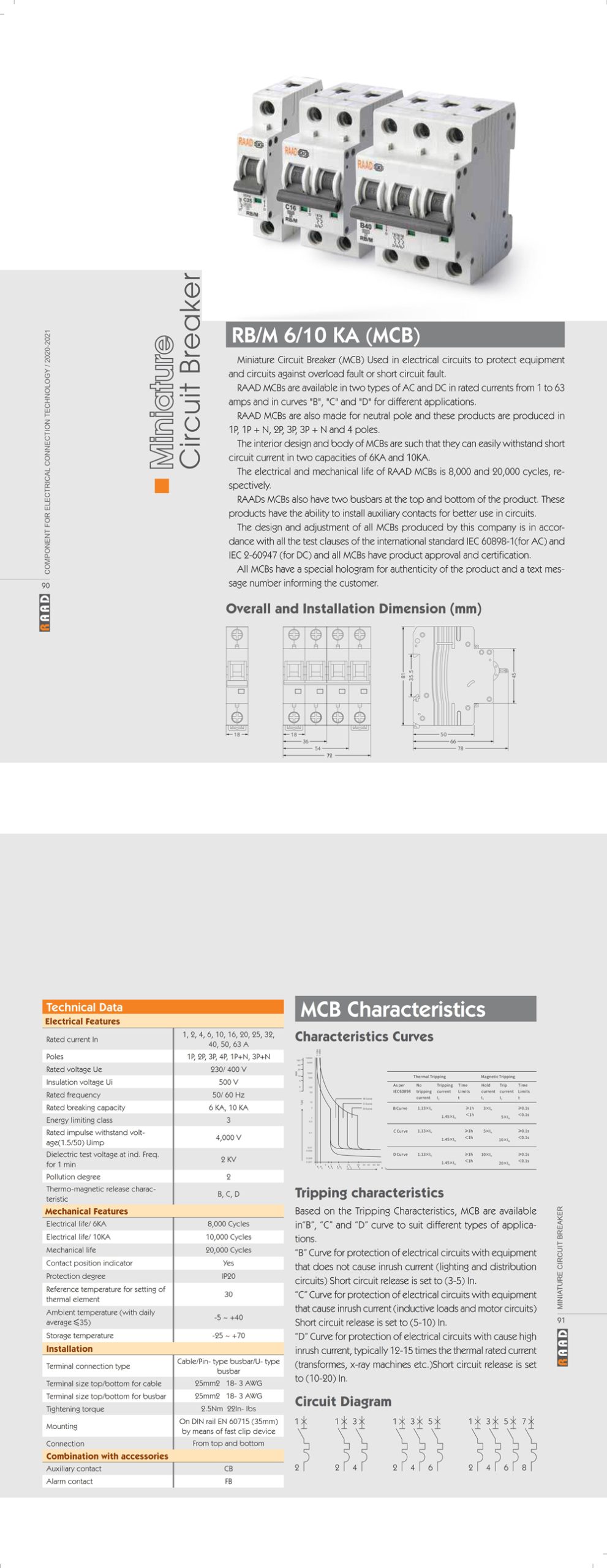 کلید مینیاتوری جریان مستقیم DC برند RAAD رعد 2 پل 40 آمپر 6 کیلو آمپر منحنی B سری RB/MD