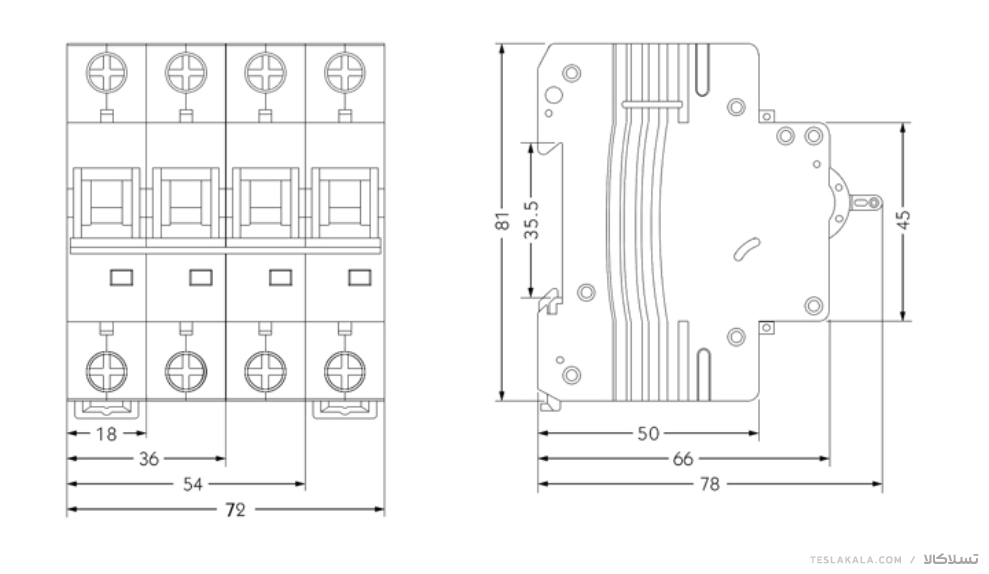 فیوز مینیاتوری DC رعد دارای نشانگر موقعیت کنتاکت (قطع یا وصل) می باشد و قابل نصب بر روی ریل نوع DIN بر اساس استاندارد EN60715 35mm توسط پایه ریل است.