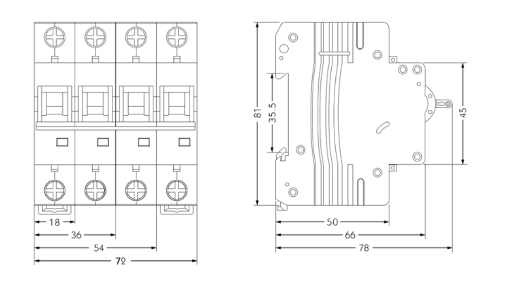 فیوز مینیاتوری DC رعد دارای نشانگر موقعیت کنتاکت (قطع یا وصل) می باشد و قابل نصب بر روی ریل نوع DIN بر اساس استاندارد EN60715 35mm توسط پایه ریل است.