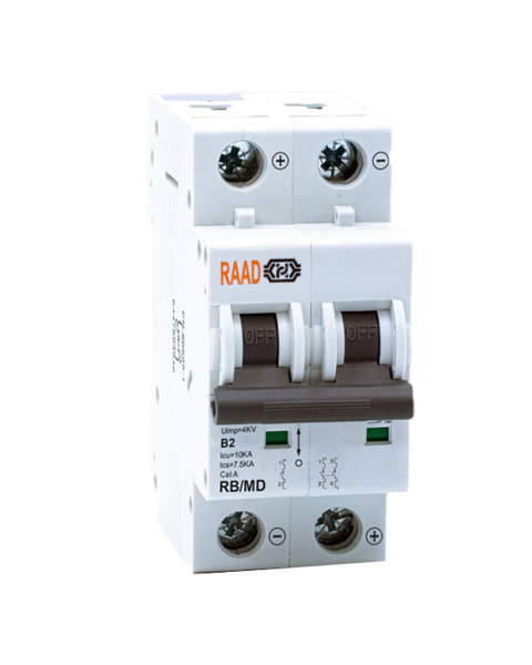 کلید مینیاتوری جریان مستقیم DC برند RAAD رعد 2 پل 6 آمپر 10 کیلو آمپر منحنی C سری RB/MD