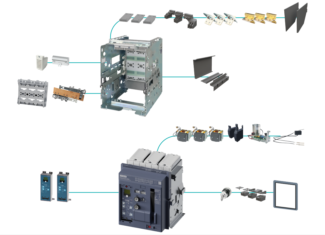 کلید هوایی 2500 آمپر ساختار بدنه فیکس SIEMENS 3WJ1225-2AE02-1AA0 ( تهیه جداگانه موتور و رله شانت و اندر)