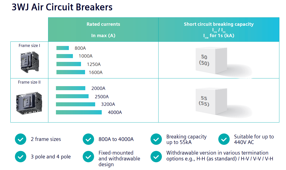 کلید هوایی 2500 آمپر ساختار بدنه فیکس SIEMENS 3WJ1225-2AE02-1AA0