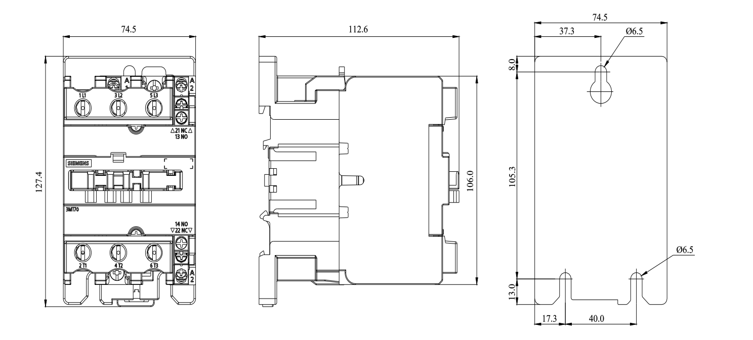 کنتاکتور زیمنس 50 آمپر 22 کیلووات بوبین 220VAC مدل 3MT7050-3AA11-0AM0